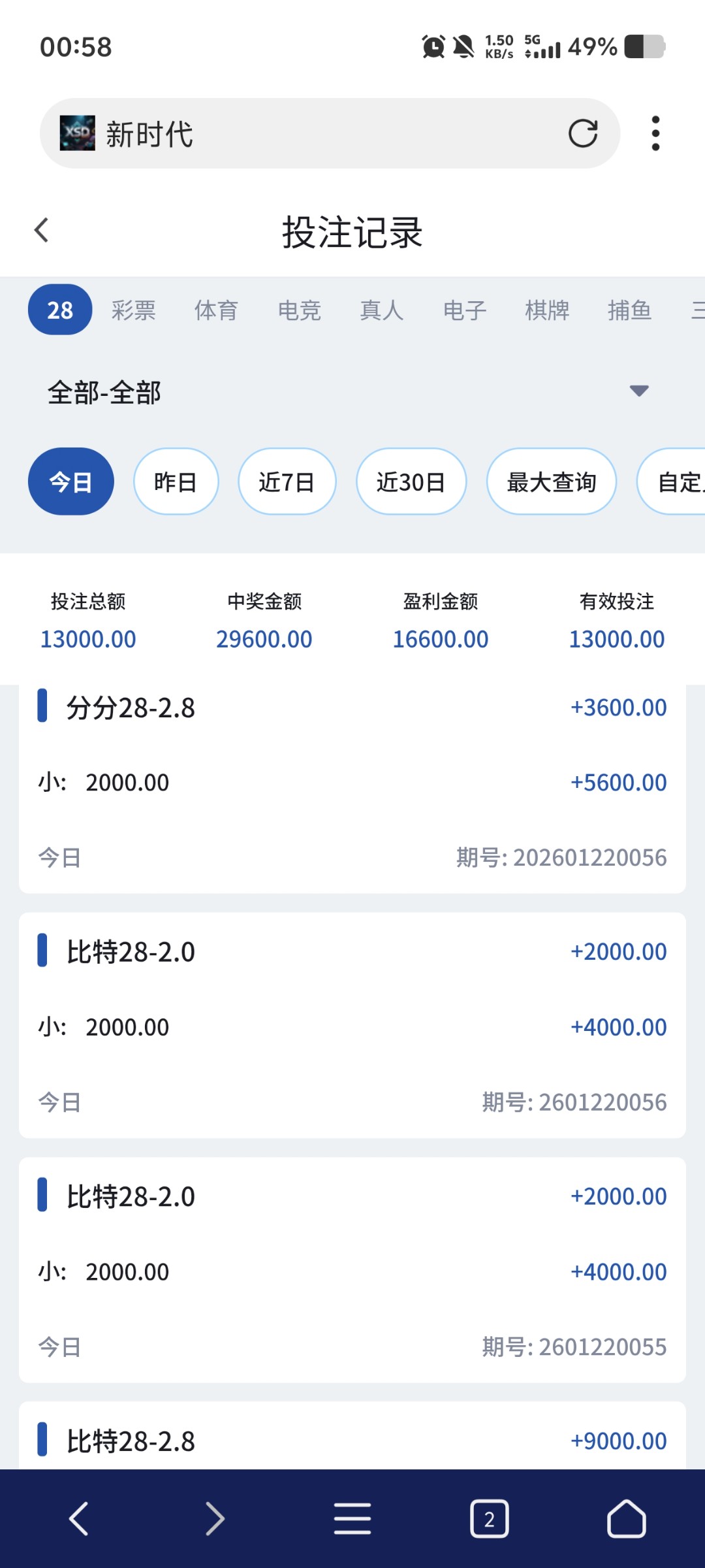 兄弟们这几天打新时代打得好累 刚出第二天就充值 一直干现在第5天 天天充值 第一天赢了差不多1k 然后第二天又输2400 后面第三天领返水又回到1300 又冲又挂壁 第四天20号领3个台34月彩只出了一个200 然后冲新时代给我回到900 又冲又挂 第5天今天领80返水上200 然后有下分吃饭 剩下上分现在又干到1100 我还有必要玩吗
