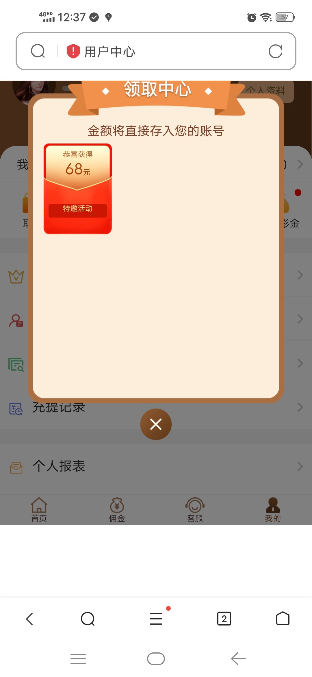 老用户有号登陆,点击我的—领取彩金!都去看看!