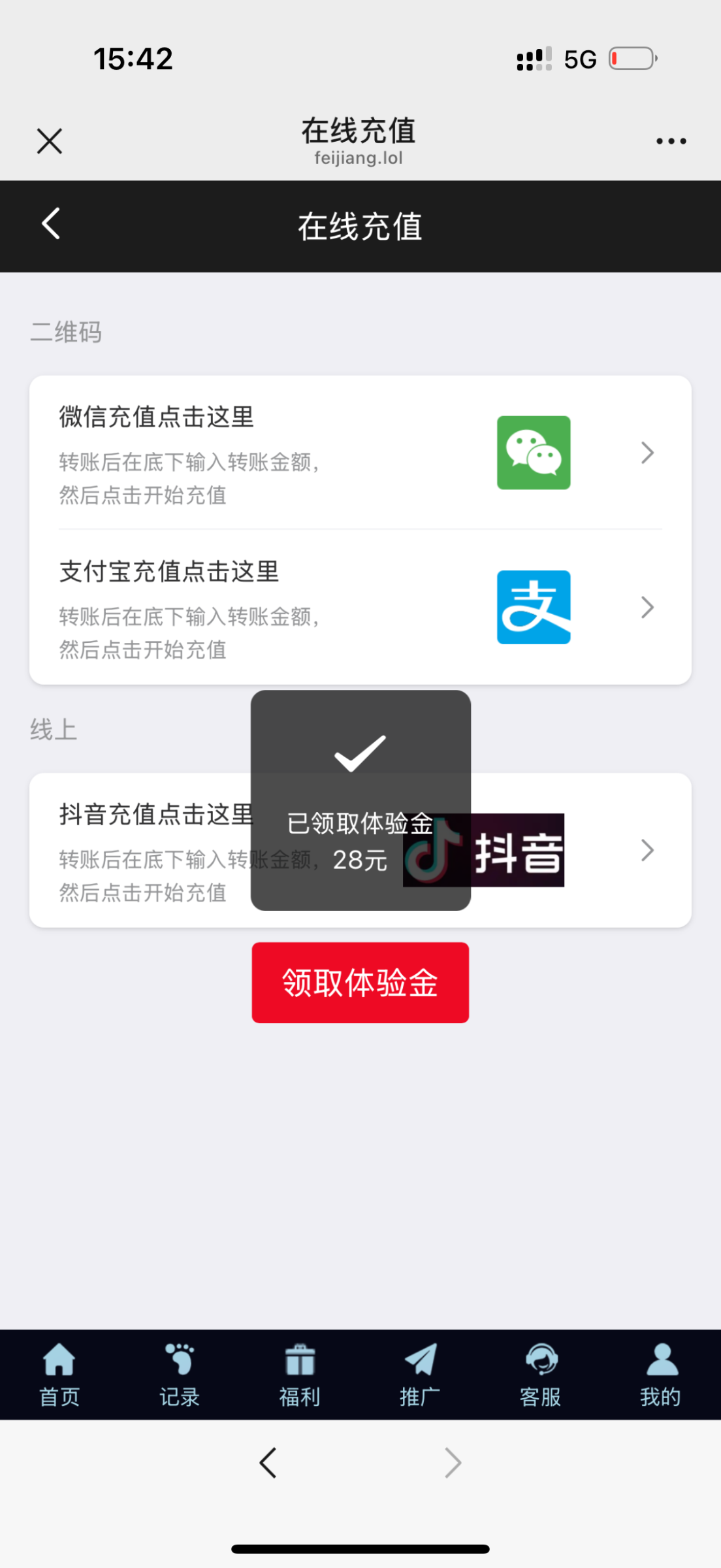 微信扫码一键登录,充值里领取体验金秒送28!
