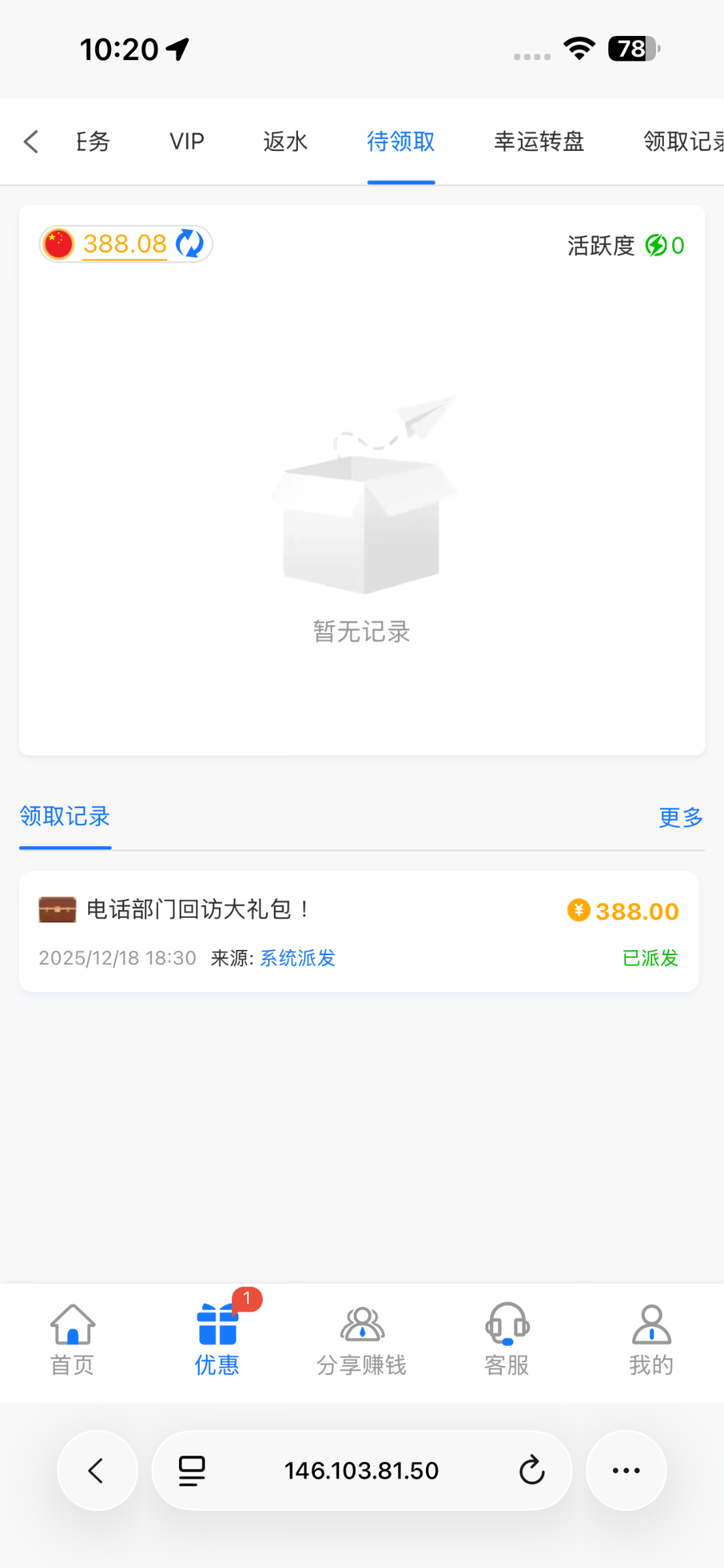 有号的可以去看看,昨天送的没接到电话,送了388,有就有没有就没有,骂人死妈