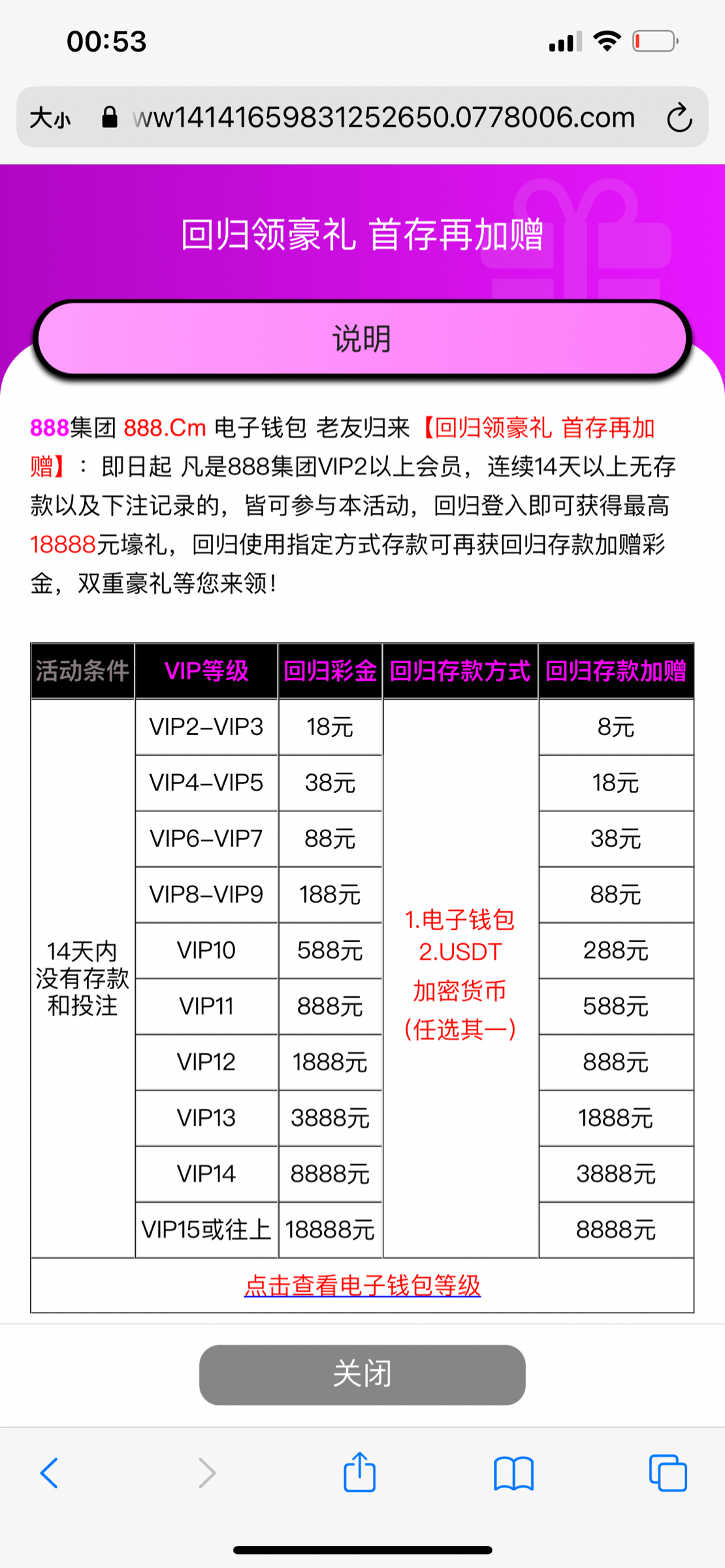 玫红色888集团等级回归礼金