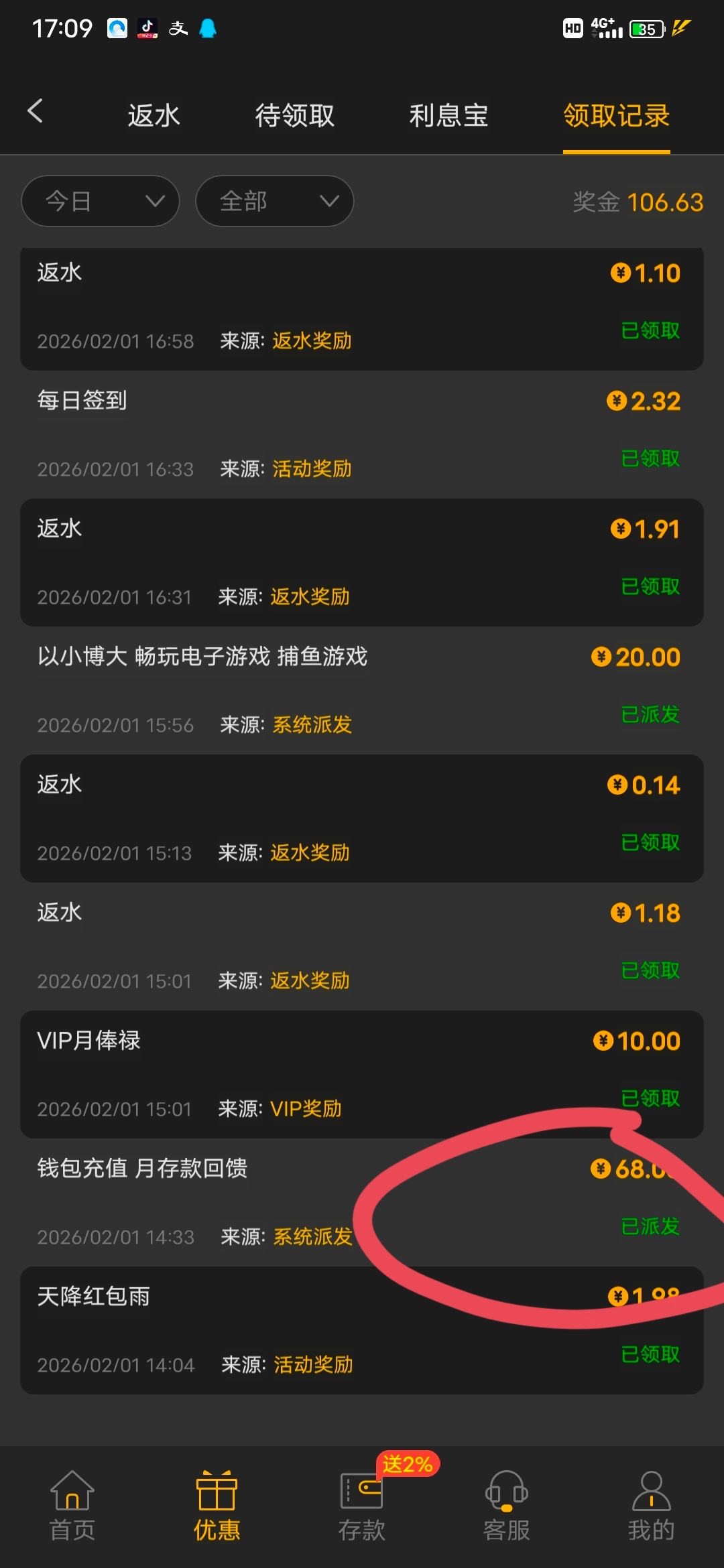 上月充值过的老哥上号看看有没有我有68