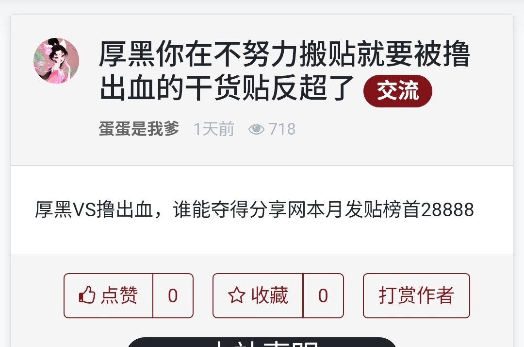 3、本站资源均来自互联网-需自行判断与负责。每日更新(论坛内容仅用于 薅羊毛 白嫖 论坛严禁充值娱乐 严禁任何形式推广 发现一律提交当地公安 )感谢您的支持!