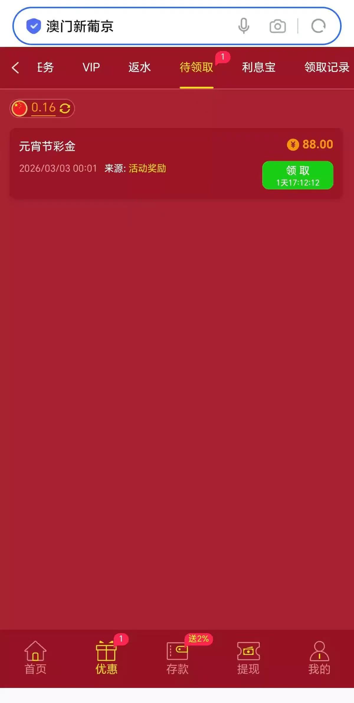 202.com,元宵回馈彩金,登录待领取直接领取