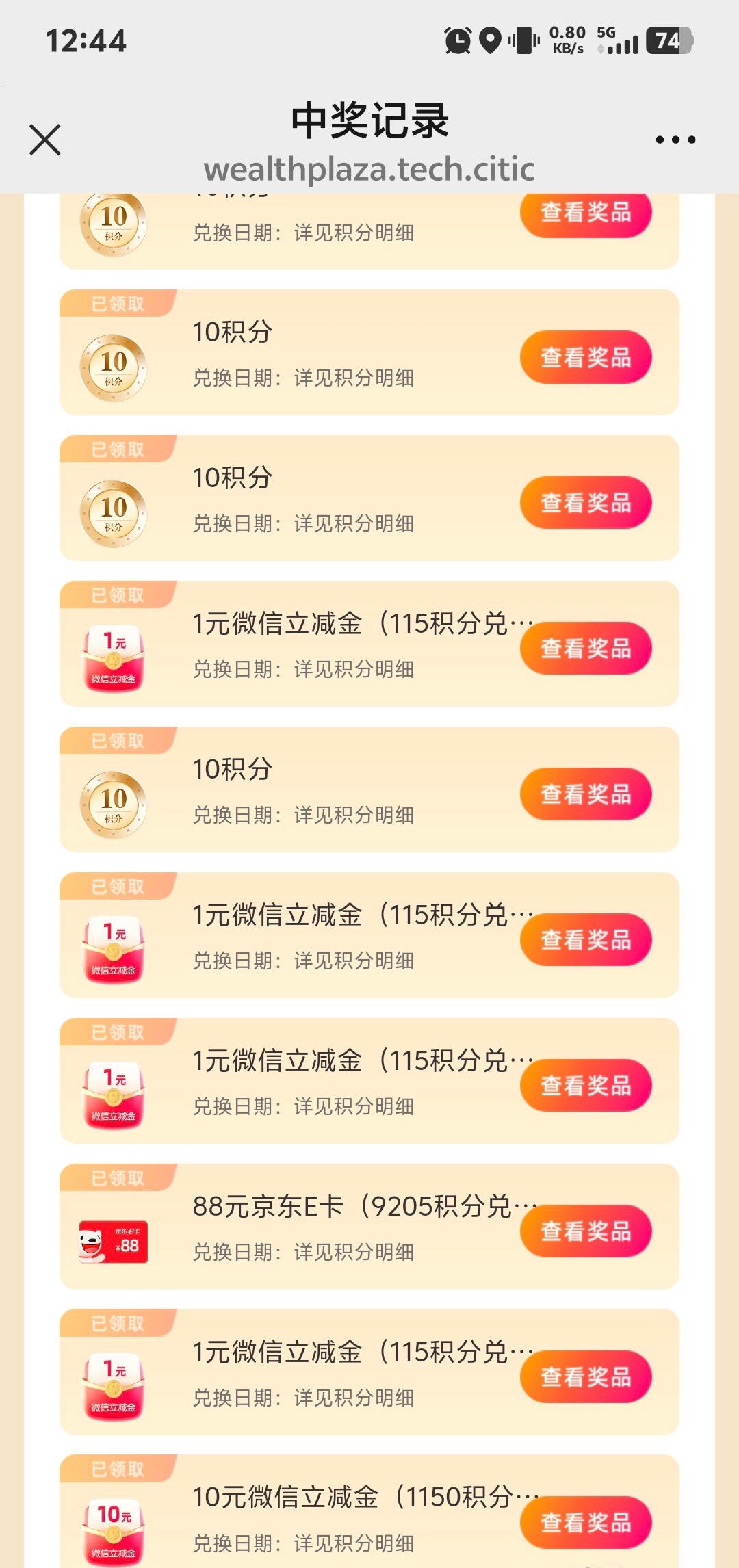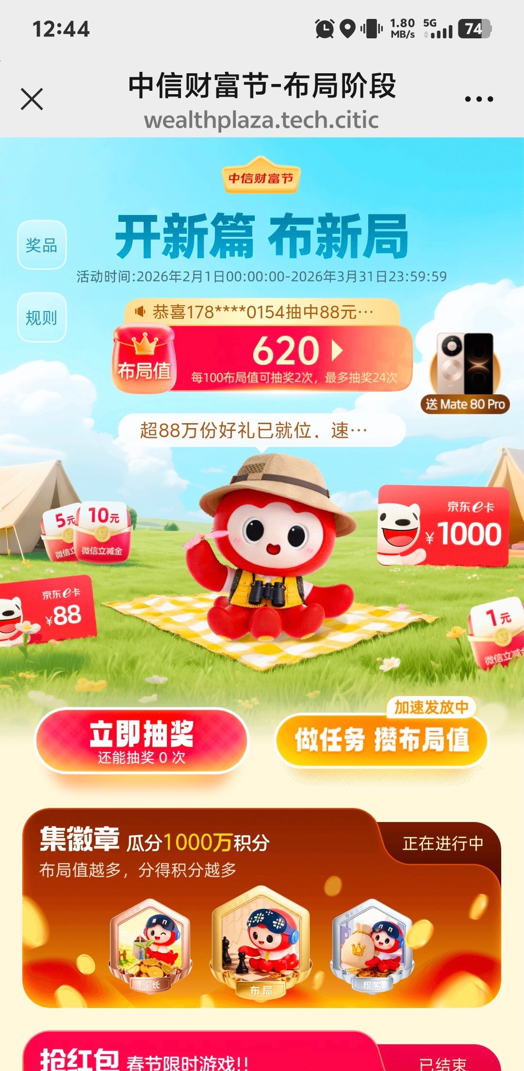 微信搜索中信财富广场 然后点那个兑换立减金的活动,进去浏览点任务,然后抽奖